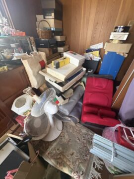 👉 箱や雑貨が重なり足の踏み場が少ない状態